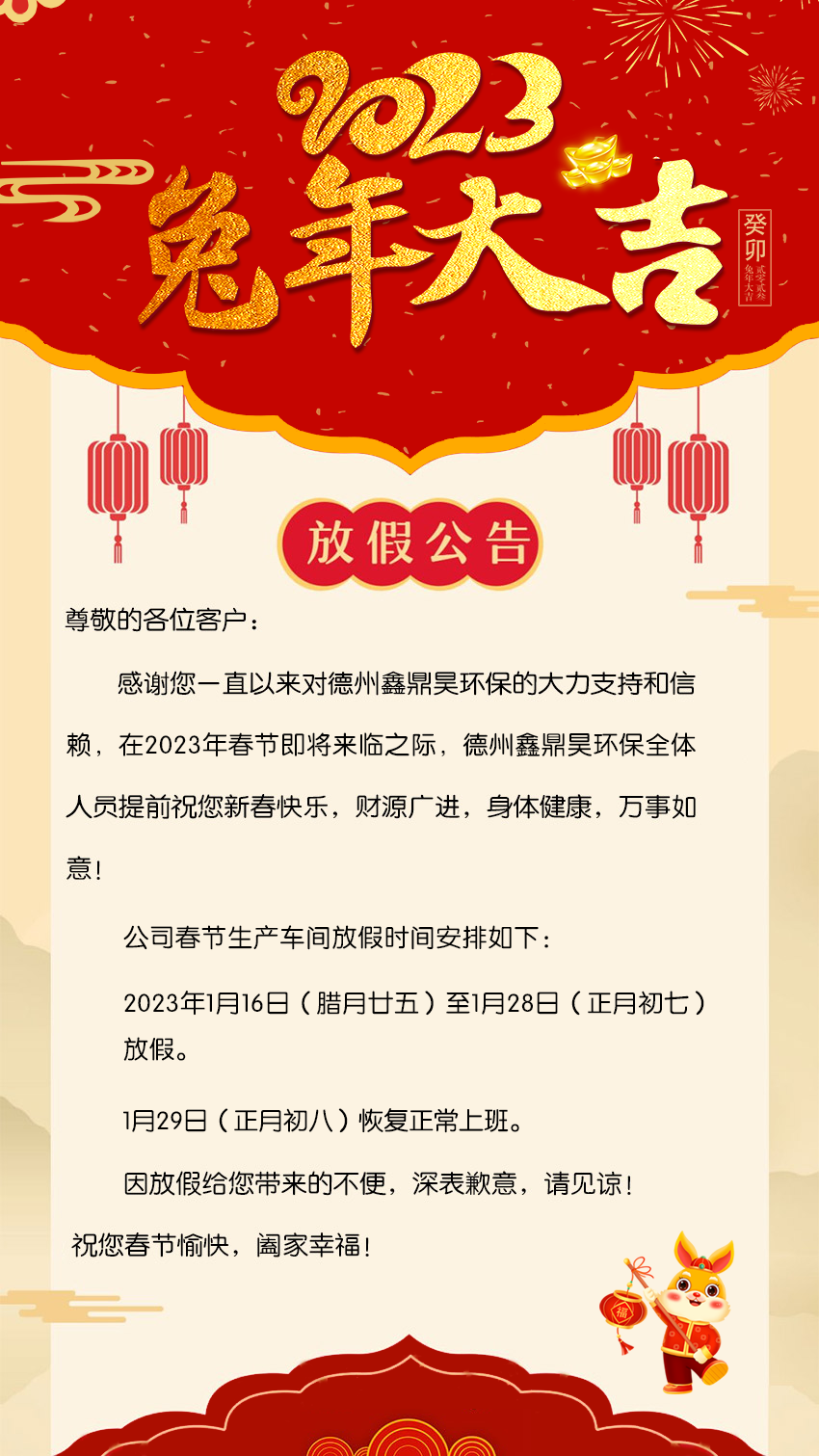 德州鑫鼎昊環(huán)保2023年春節(jié)放假通知