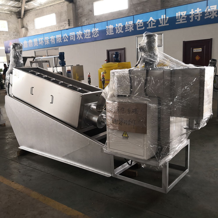 疊螺式污泥濃縮機主要是由五部分組成。濃縮主體、驅(qū)動裝置、濾液槽、混合系統(tǒng)、架子等組成。疊螺污泥濃縮機在工作的時候,都是通過污泥泵把污泥運送到混合槽。這時,加藥裝置也按照定量給混合槽輸入藥液,攪拌機整體帶動污泥和藥液攪拌,達到液體的傳感器。傳感器得到信號,讓疊螺污泥機工作。接下來壓濾流入疊螺主體污泥。在疊螺主軸的工作下,把污泥一步一步的提升到污泥的出口。液體從固定環(huán)和游動環(huán)之間流出來。