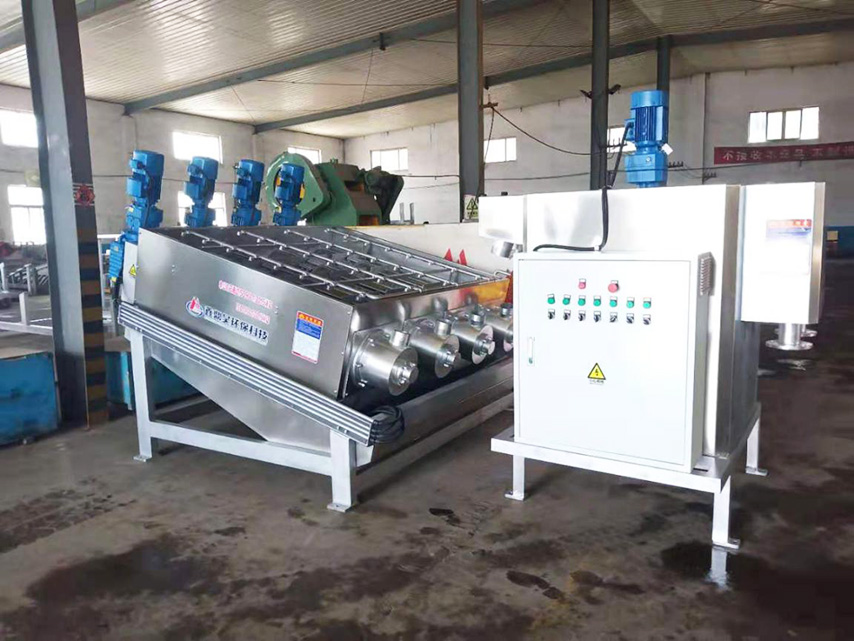 疊螺式污泥濃縮機(jī)主體是由固定環(huán)和游動(dòng)環(huán)相互層疊,螺旋軸貫穿其中形成的過(guò)濾裝置。前段為濃縮部,后段為脫水部。