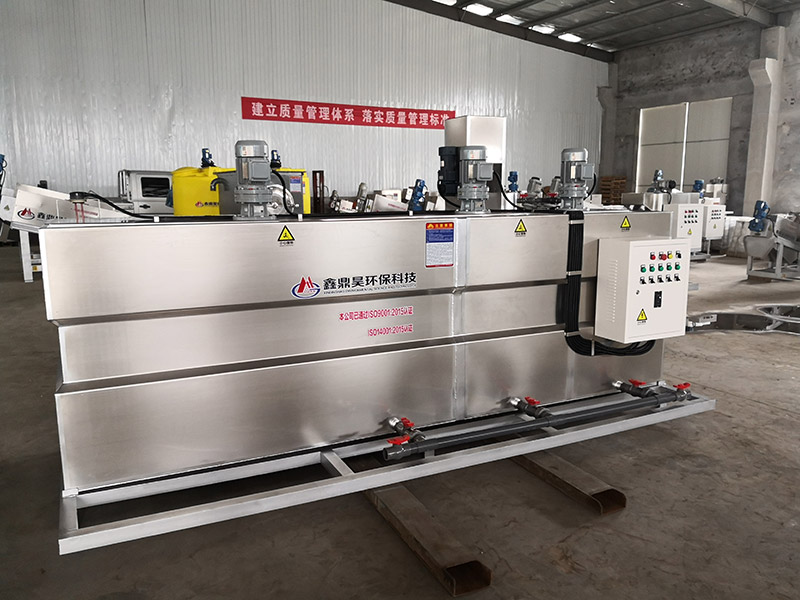 為解決此類難題,德州鑫鼎昊環(huán)?萍加邢薰驹谖障冗M(jìn)工藝技術(shù)基礎(chǔ)上,研制開發(fā)了全自動(dòng)加藥機(jī)XDHJY系列一體化絮凝劑制備裝置。全自動(dòng)加藥機(jī)是集溶藥、熟化、投加于一體的全自動(dòng)加藥系統(tǒng)。該設(shè)備根據(jù)所需藥液的濃度,控制投加的藥劑量,自動(dòng)將絮凝劑進(jìn)行攪拌、溶解、熟化,再由加藥泵投加到處理水中,降低了絮凝劑使用過(guò)程中的復(fù)雜程度,并使投加過(guò)程自動(dòng)、準(zhǔn)確,而且節(jié)省藥量。